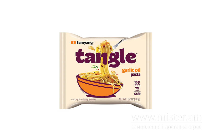 Samyang Tangle Garlic Oil Pasta — це ароматна паста швидкого приготування з насиченим смаком часникової олії та спеціями. Легка, але водночас ситна страва для тих, хто цінує класичні поєднання смаків. Пружна паста вкривається запашним соусом із нотками обсмаженого часнику та пряних трав. Готується всього за 4 хвилини — ідеальний варіант для швидкого обіду або перекусу.
