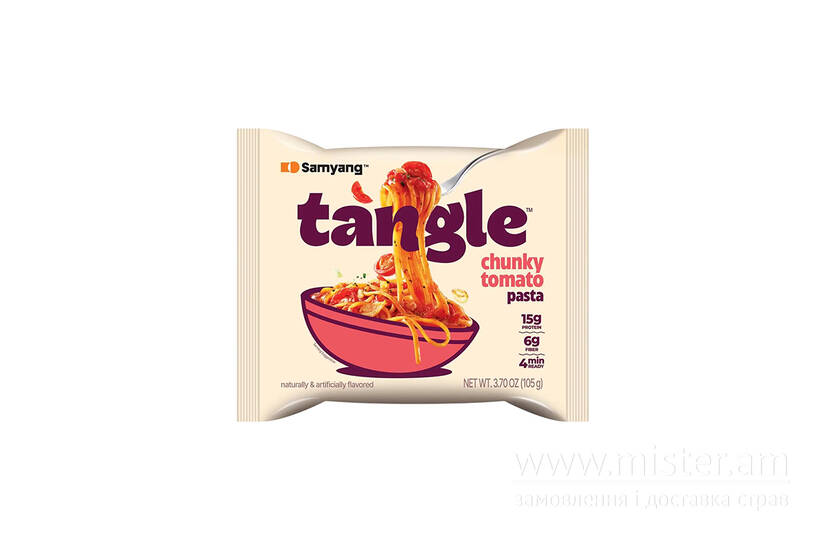 Samyang Tangle Chunky Tomato Pasta — це сучасний формат швидкої пасти з насиченим томатним соусом та шматочками томатів. Готова всього за 4 хвилини! Соус має приємний баланс кислинки стиглих томатів та ароматних спецій, а сама паста — пружна та ситна. Ідеальний варіант для швидкого обіду вдома, в офісі або на навчанні.