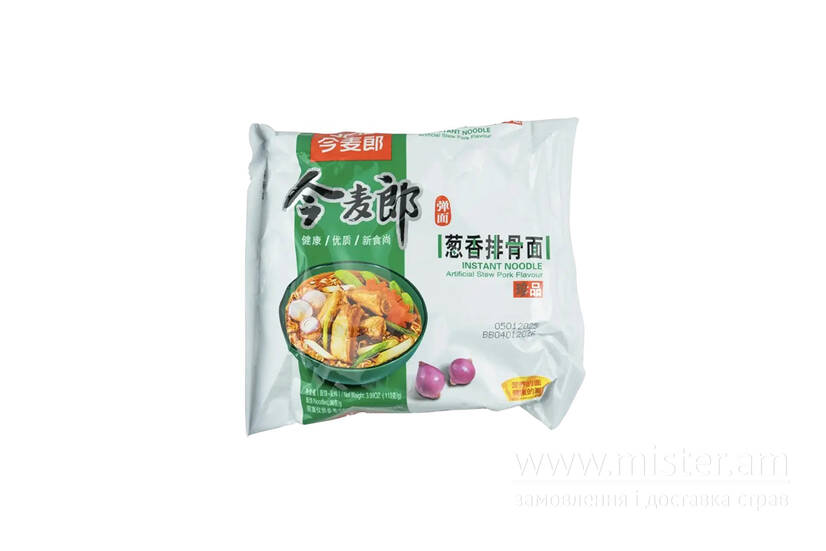 Локшина зі свининою і овочами JML — ситна та зігріваюча страва в азійському стилі. Має глибокий м’ясний смак з нотами карамелізованої цибулі, спецій та легким соєвим відтінком. Локшина пружна, добре вбирає соус і бульйон, створюючи збалансовану та насичену текстуру.