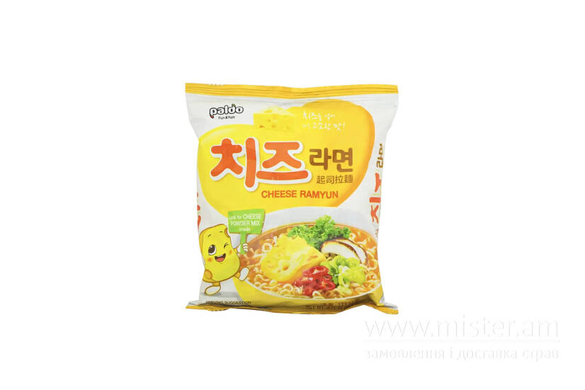 Суп рамьон з сиром Paldo — це локшина швидкого приготування з ніжним, вершковим сирним соусом і легкою пікантною ноткою. Поєднання насиченого смаку сиру та корейських спецій створює м’який, ситний і дуже комфортний смак без різкої гостроти.
