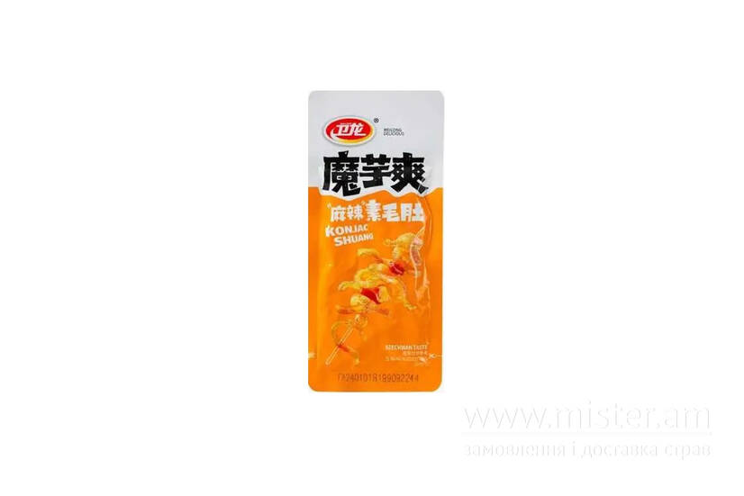Цей унікальний снек поєднує в собі ніжну текстуру конжака та хрусткість свіжих пагонів бамбука. Виготовлений з конжаку, цей снек пропонує хрустку текстуру з насиченим смаком, характерним для традиційних сичуанських страв. Збалансоване поєднання спецій та ароматів надає цьому продукту унікальний і пекучий смак, який переносить вас у серце Сичуаню з кожним шматочком.