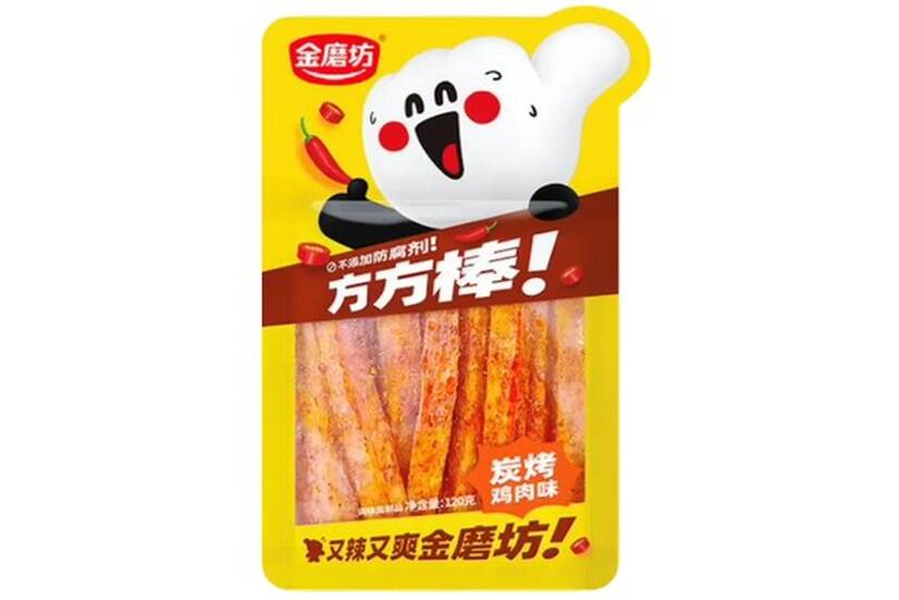Снек Латяо Big Latiao Grilled Chicken Flavor від Golden Mill — Це м’які, тягучі смужки з пшеничного тіста, просочені пряним соусом зі смаком м'яса гриль. Поєднання солонувато-гострого смаку та насиченого аромату робить їх ідеальним снеком для любителів азійської кухні.