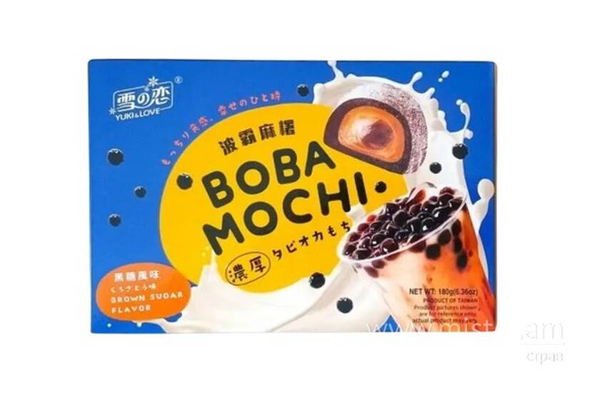 Боба мочі від YUKI&LOVE з коричневим цукром має насичений карамельно-мелясний присмак із легкою димною ноткою, що ідеально поєднується з ніжним, тягучим тістом мочі та жувальними кульками боба. Смак виходить глибоким, солодким і дуже ароматним — як у популярному напої bubble tea з коричневим цукром.