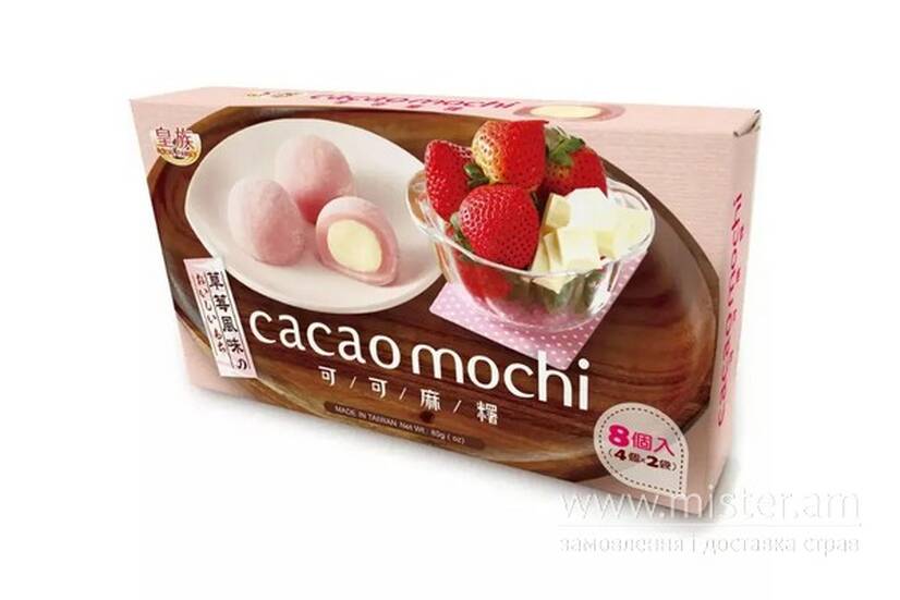 Японські мочі (моті) - надпопулярний десерт не тільки у Японії, але і далеко за її межами. Основою для моті є тісто з клейкого рису, а в якості наповнювача додають різноманітні пасти з фруктів, бобів, горіхів, ягід, а також морозиво. Моті з полуницею і білим шоколадом - має ніжну тягучу консистенцію та солодку, ароматну начинку.