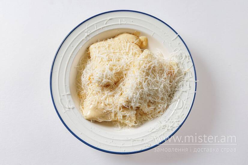 Ніжність моцарели, пікантність дорблю та вишуканий аромат пармезану, щедро огорнуті сирним соусом.