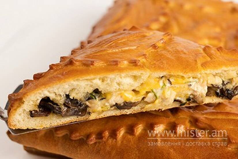 Печериці, куряче філе, майонез, зелень, сир, спеції.