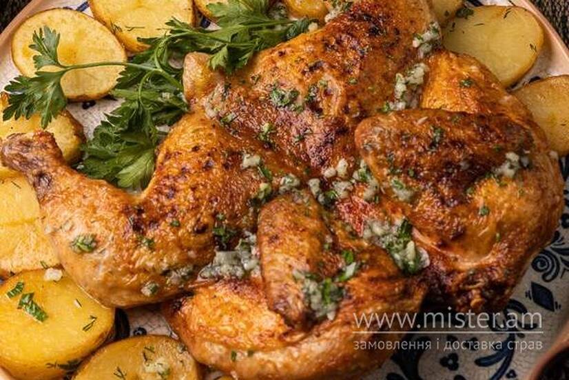 Зовні хрустка та золотиста, всередині – м`яке і соковите м`ясо, а поруч велика порція смачної картопельки. Вагового страва. Ціна страви может відрізнятіся залежних від його кінцевої ваги.
