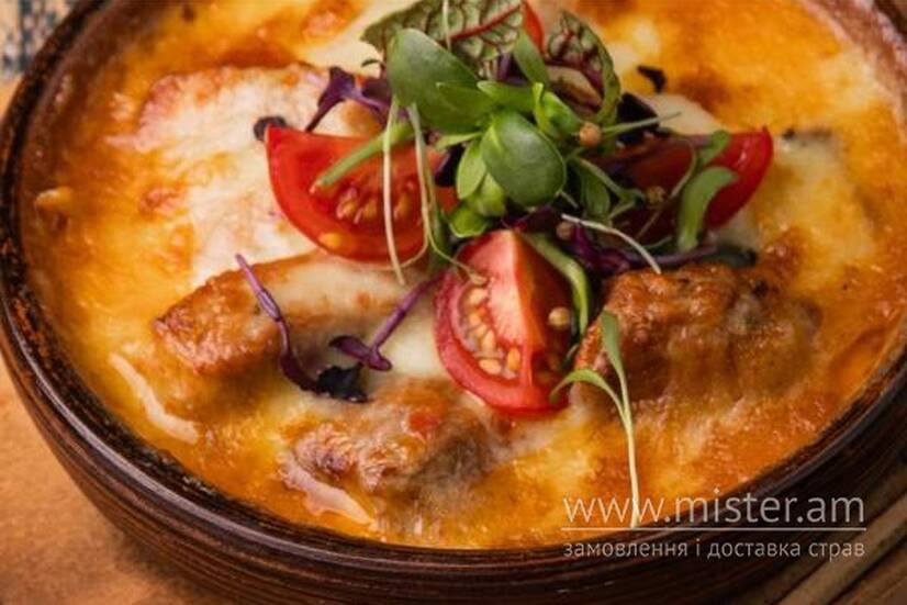 Свинячий ошийок запечений з аджикою та сиром сулугуні.