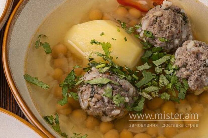 Легкий суп з баранячими кюфтами, картоплею та нутом.