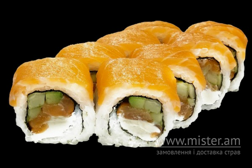 Лосось, крем-сир, огірок, рис, водорості норі.