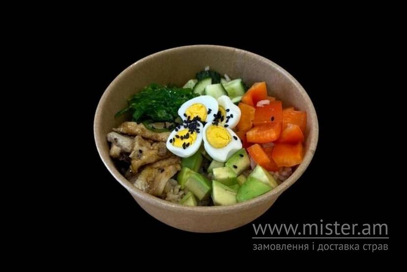 Рис, соєвий соус, авокадо, чука, огірок, яйця перепелині, перець болгарський, вугор, кунжут, соус горіховий.