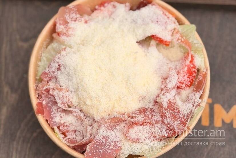 Хрустка вафля, айсберг, томати, крем-сир, хамон, пармезан та авторський соус.