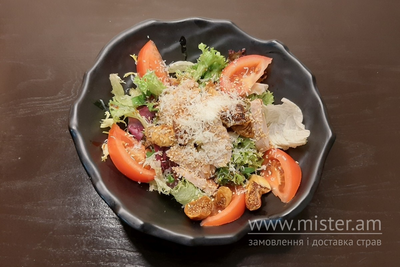 Філе індички, інжир, пармезан, помідори, мікс салатів, заправка