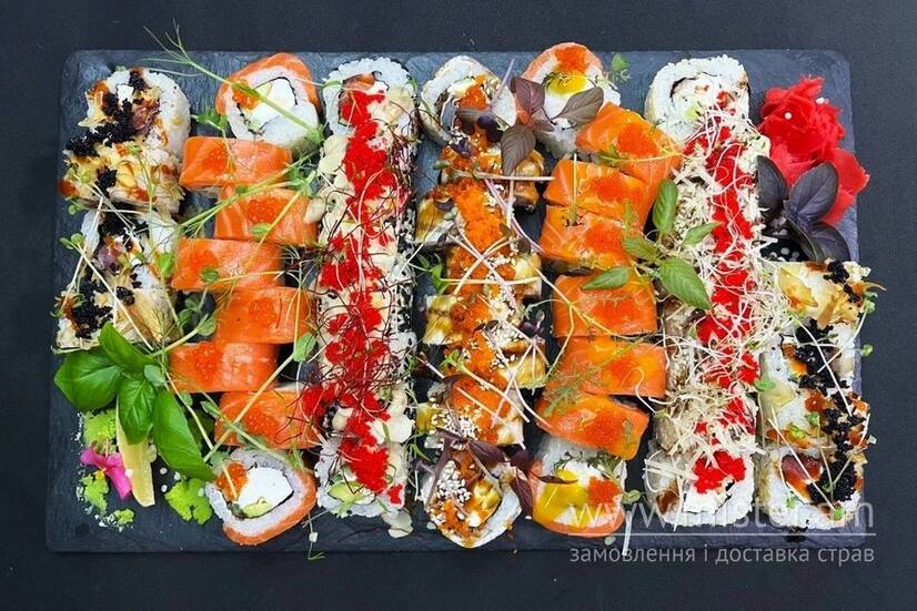 Рол Боніто, Рол з вугрем в кунжуті, Рол з лососем в кунжуті, Філадельфія з креветкою в лососі, Філадельфія з вугрем, Філадельфія з лососем.