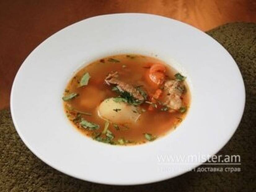 Файна татарська зупа з яловичини ( картопля, морква, болгарський перець,помідор, цибуля,зелень).