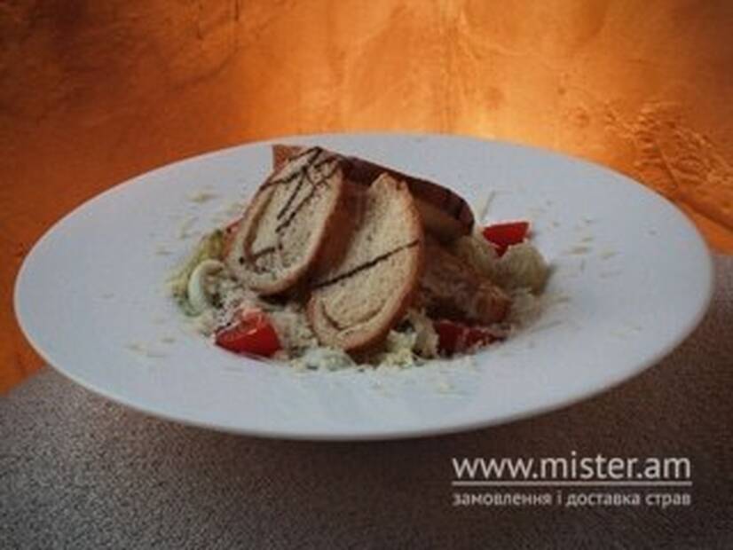 Соковиті креветки, свіжий айсберг, чері, пармезан і фірмовий соус цезар.