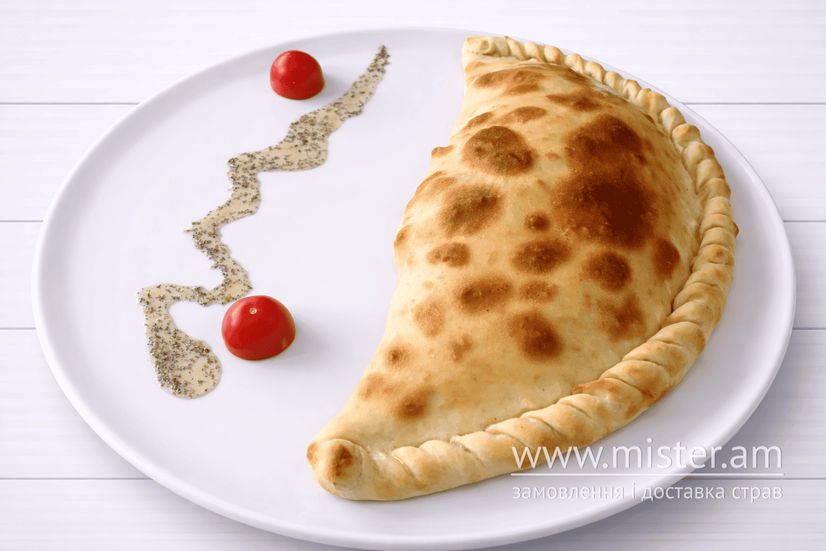 Соус пелаті, моцарела, печериці, шинка, помідор чері, базилік.