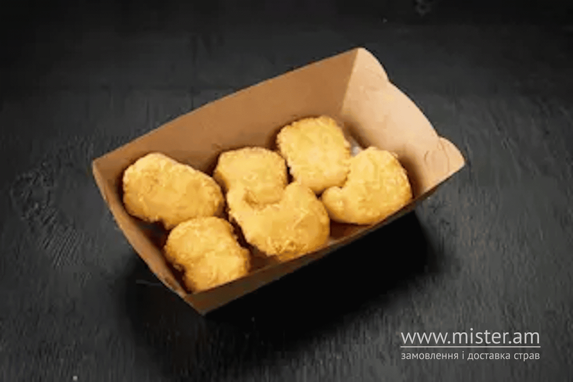 Апетитні румяні шматочки курятини, паніровані у хрумких сухарях.