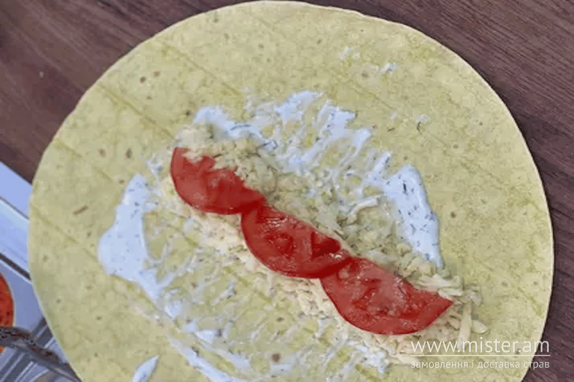 Лаваш, крафтовий сулугуні, помідор, фірмові соуси, хрумка цибулька.