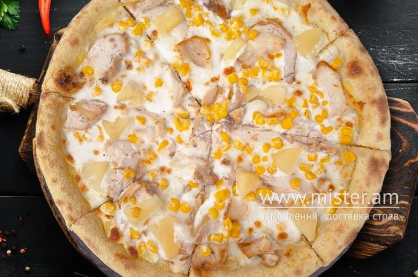 Вершкова основа, сир моцарела, філе курки, кукурудза, ананас, 600 г.