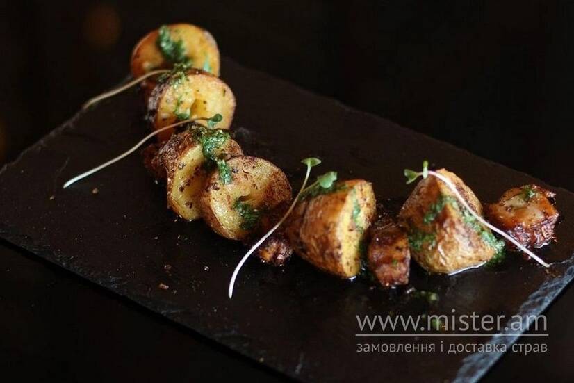 Смажена на мангалі з хрусткою скоринкою, приправлена спеціями, подаємо разом із соковитою підчеревиною, обсмаженою до золотавої скоринки.