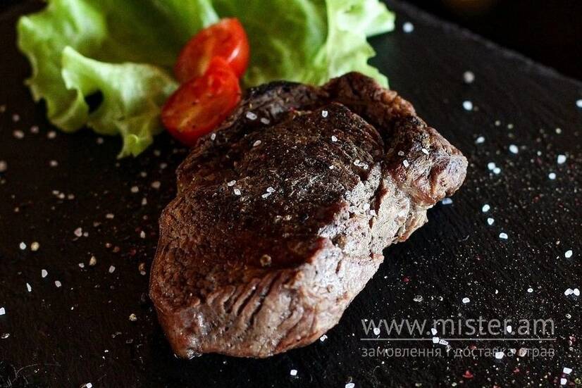 Преміальний стейк із мармурової яловичини, вирізаний із міжреберної частини туші, cмажимо до бажаного ступеня прожарювання. Вагова страва, кінцева вартість замовлення може бути змінена після опрацювання закладом.