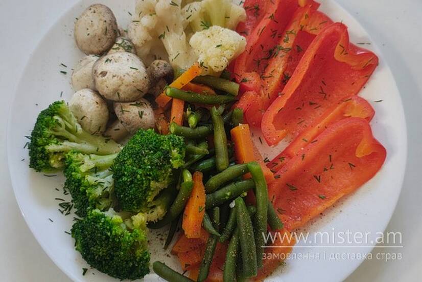 Спаржа, морква, перець болгарський, капуста брокколі, цвітна, печериці.