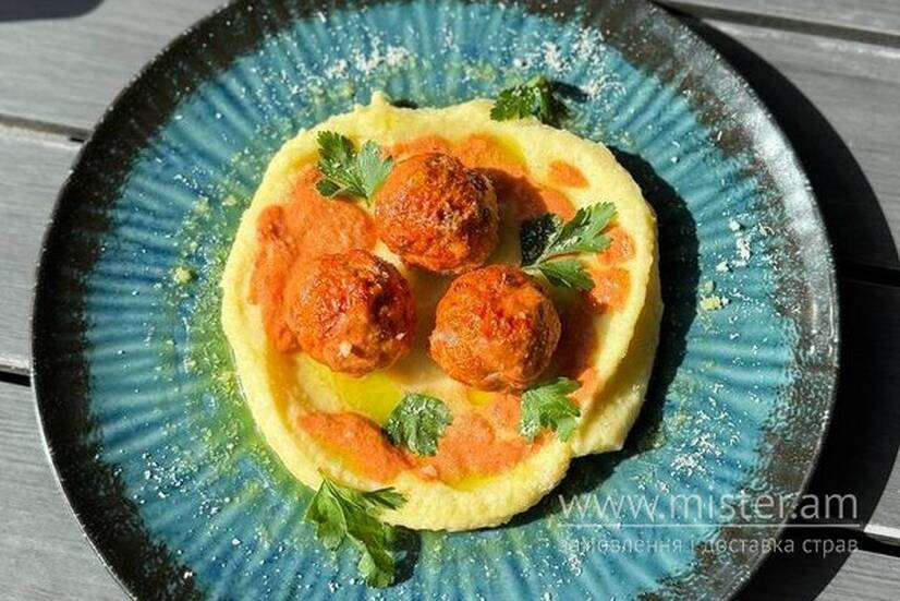 Мітболи у томатно-вершковому соусі з картопляним пюре
