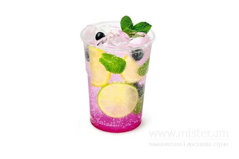 Лід, лайм, м'ята, лимон, лохина, сироп лаванда, спрайт.