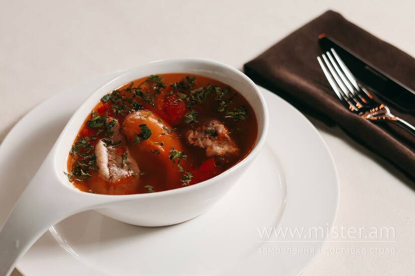 Телятина, свинина, картопля, болгарський перець, паприка, гострий перець.