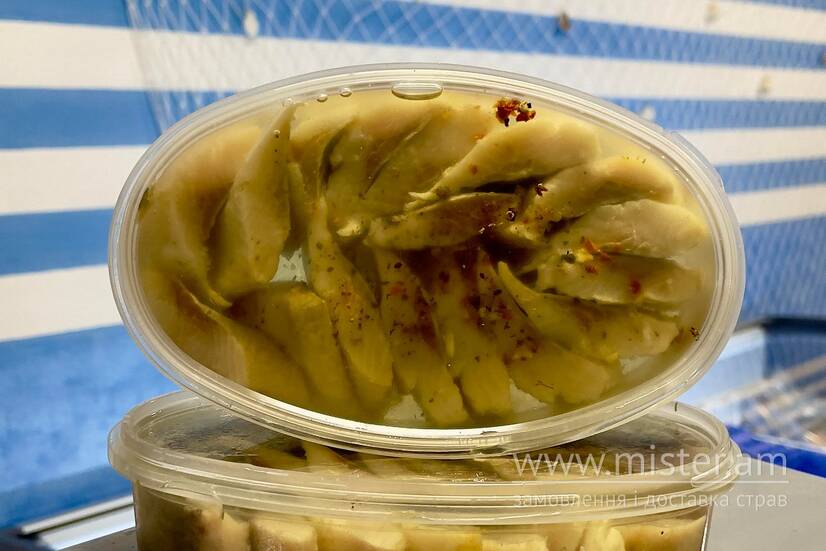 Шматки оселедця в олії