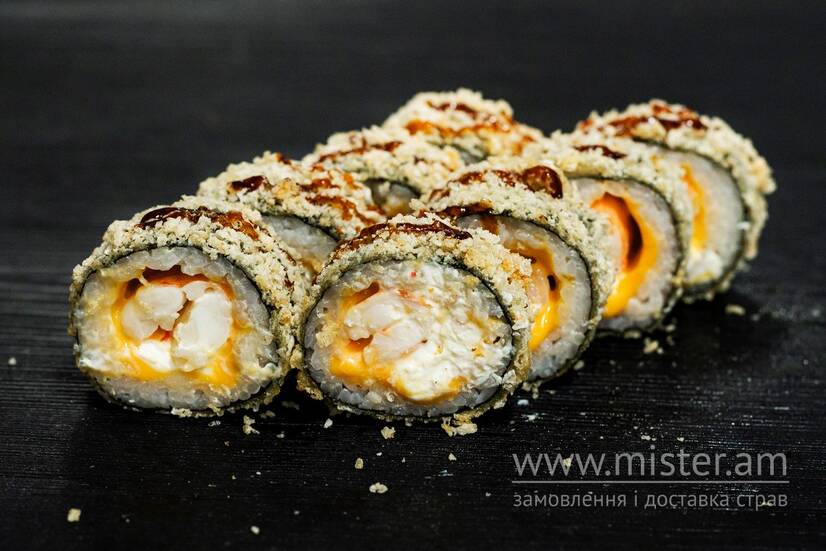 Рис, норі, креветка тигрова, сир тостовий, крем-сир, соус унагі.