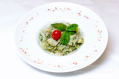 Паста "Фетучині", філе курки, шпинат, вершки, пармезан.