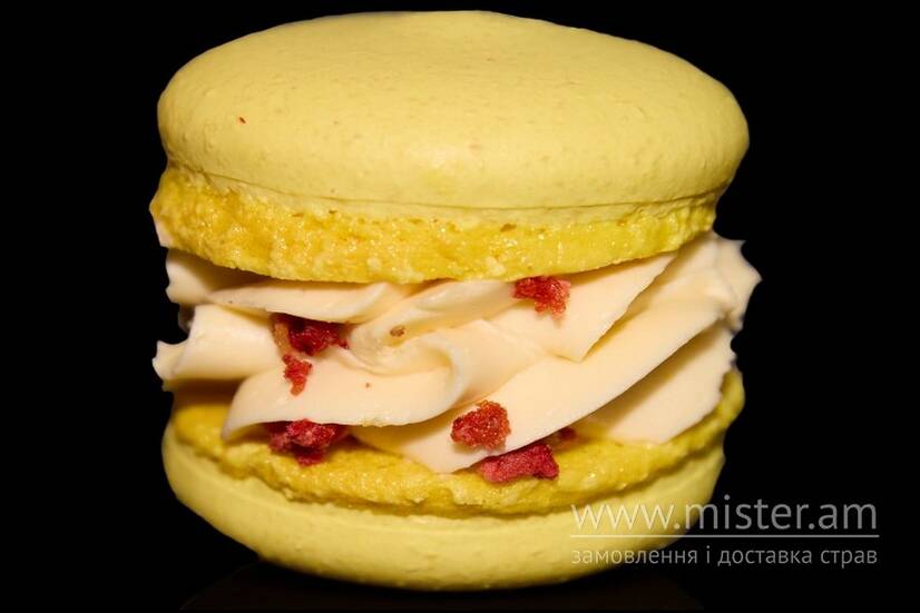 Мигдальна мука, цукрова пудра, білий шоколад, паста манго, вершки, полуниця