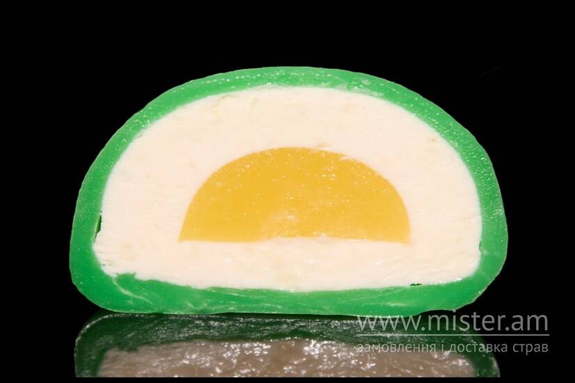 Крем-мус (сир вершковий, вершки, білий шоколад, кокосова стружка), пюре ананаса, рисове тісто.