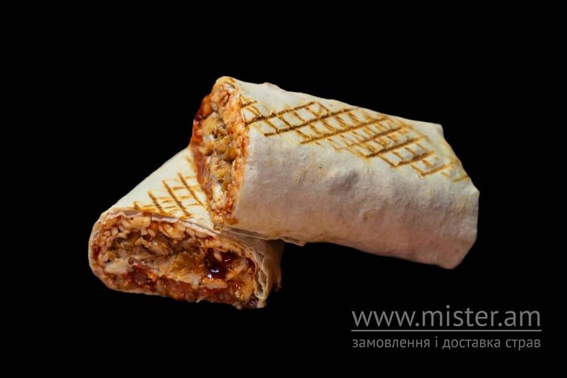 Кебаб на вибір курячий, телятина), помідор, сир моцарела, салямі, соус часниковий, соус червоний.