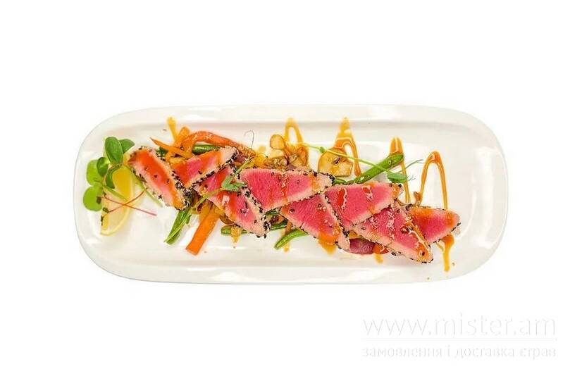 Стейк тунця з овочами