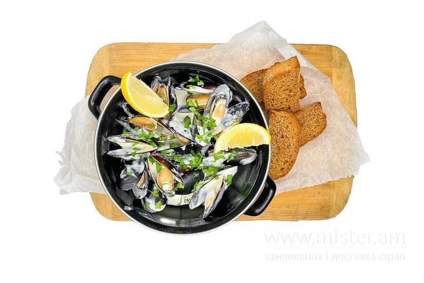 Чилійські мідії у вершково-сирному соусі (велика порція)