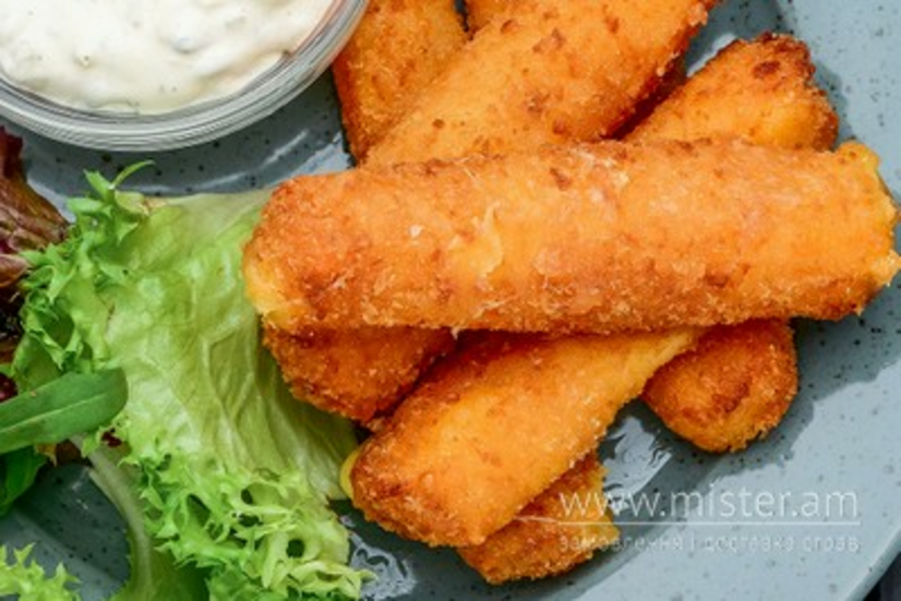 Сир Гауда з перцем чилі в сухарях, соус тар-тар.