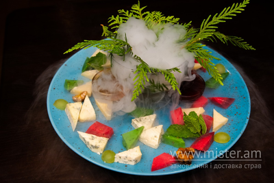 Сир дор блю, гауда песто, гауда лаванда, пармезан, виноград, малиновий соус, горіх грецький карамелізований.