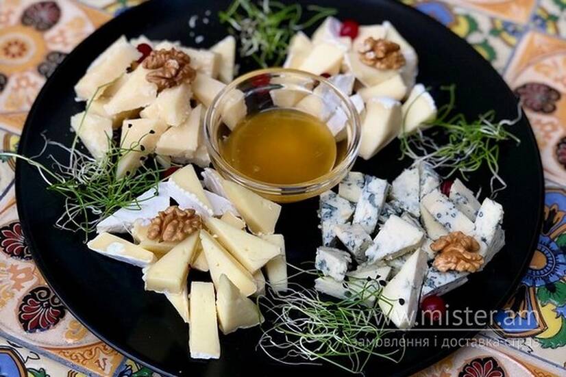 Дор блю, пармезан, брі, камамбер, грецький горіх, мед.