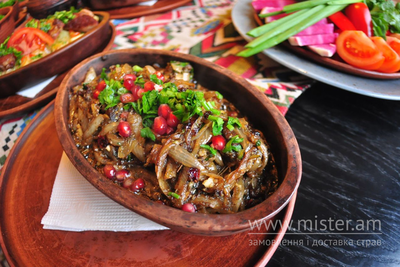 Печеня з курячої печінки на традиційній глиняній пательні кеці. Дуже смачно в авторському виконанні нашого шеф-кухаря Резо Теймуразова.