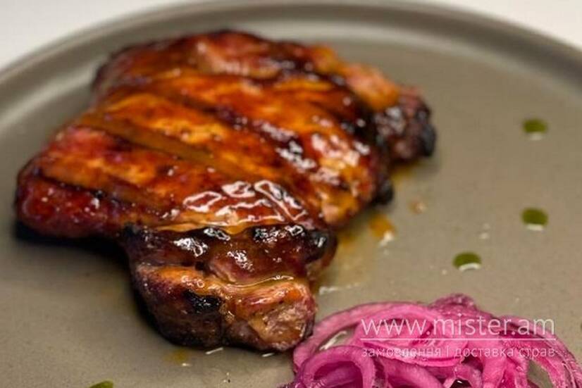 Соковита свинина, запечена в хоспері під гостро-солодким соусом.