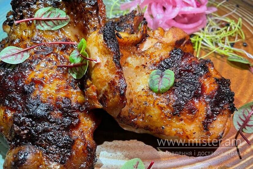Курячі стегна, замариновані в пікантному соусі та запечені в хоспері.