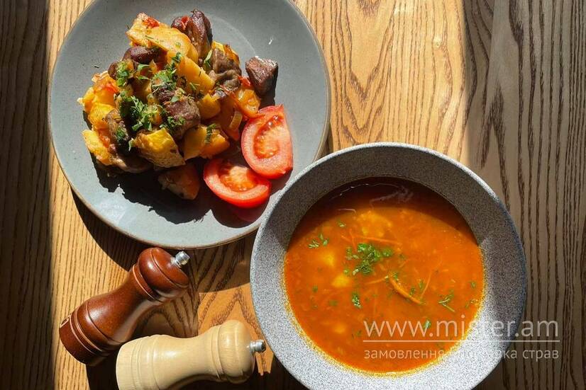Суп Харчо з телятиною, оджахурі зі свининою.