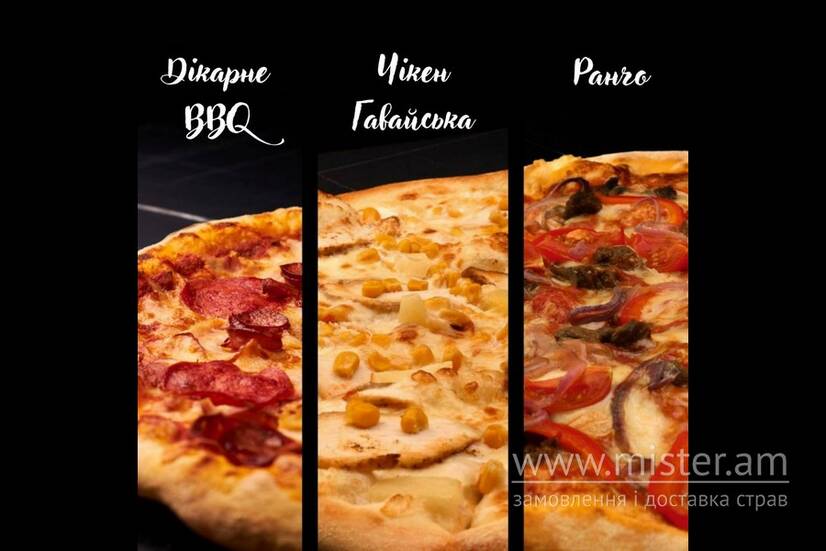 Дікарне BBQ 32 см, Чікен Гавайська 32 см, Ранчо 32 см.