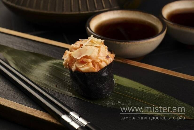 Рис, креветка, мигдалеві пластівці, соус Крем-Чилі, норі.