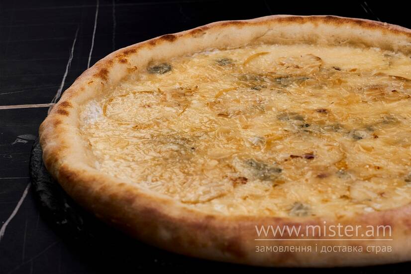 Моцарела, соус вершковий, груша, дор-блю, пармезан, мигдалеві пластівці, мед.