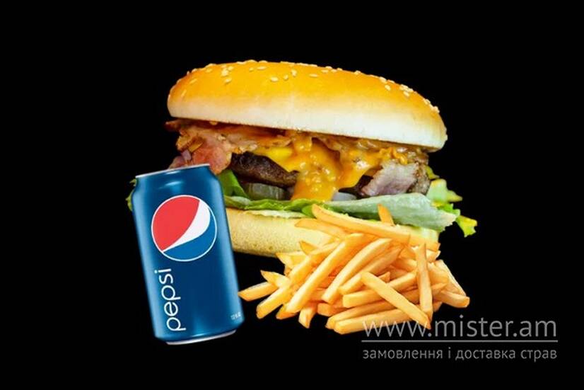 Чедер Бекон Краш, картопля фрі, Пепсі ж/б.