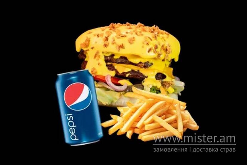 Сирний Вибух, картопля фрі, Пепсі ж/б.